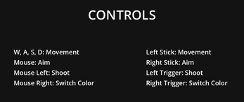 A short experience of a twinsitck shooter using a color swapping mechanic to be able to damage your enemies and avoid damage.